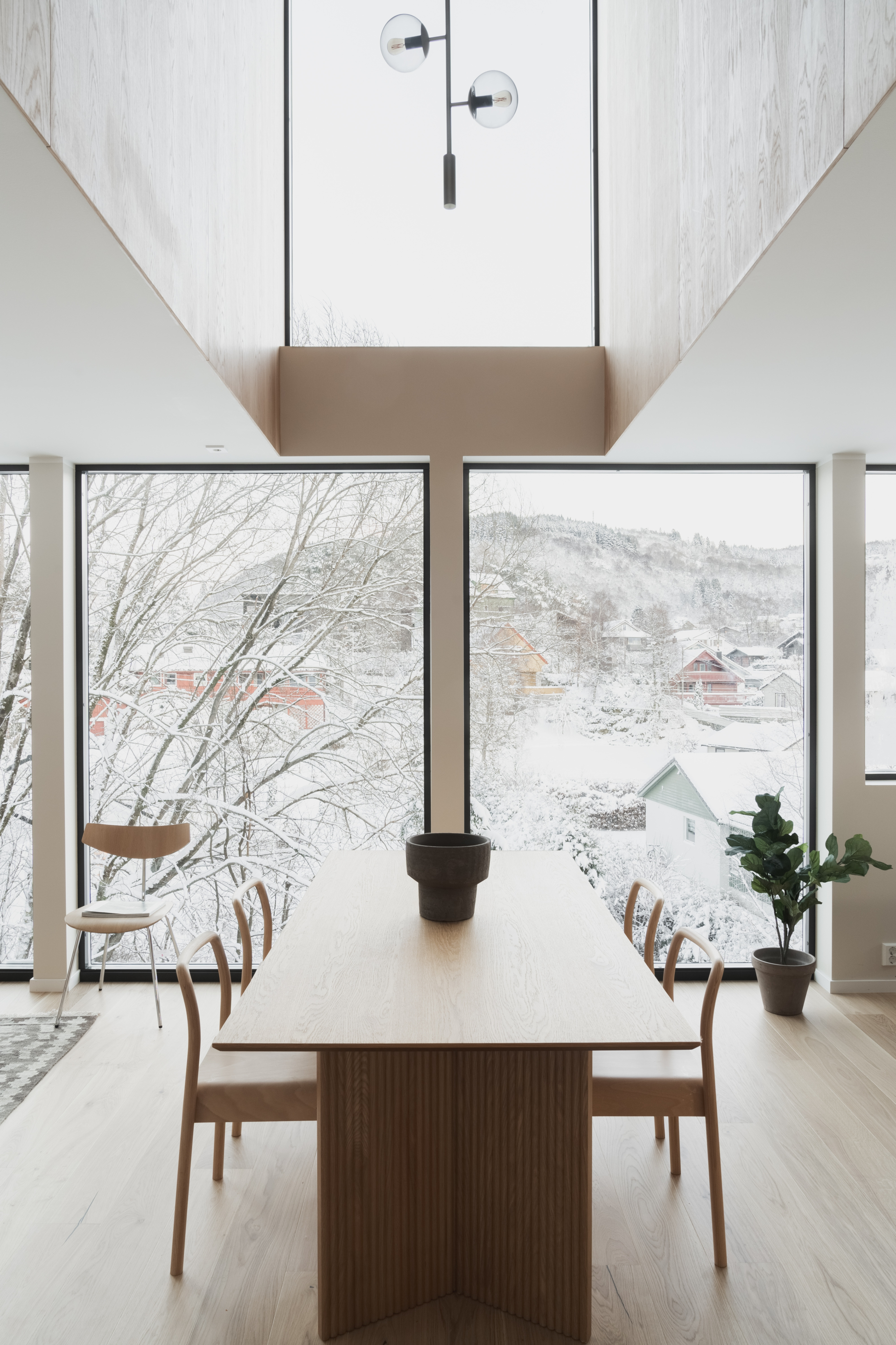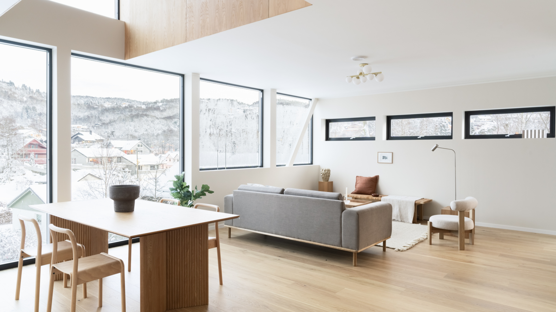 Store vinduer slipper lys og utsikt inn, og flotte uteplasser gir rom for både morgenkaffe og solfylte ettermiddager.