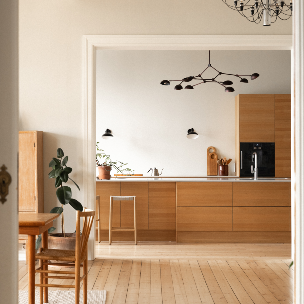 Her flytter lyset seg gjennom dagen, fra stille morgen på kjøkkenet til lun kveld på gårdstunet. Rom som føles åpne og rolige, med plass til både hverdager og pustepauser. I hagen starter dagen sakte. Et glimt av sollys, lukten av syrin, kanskje en latter fra et barn som leker.